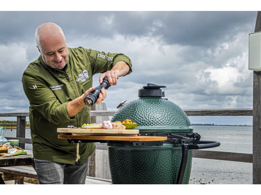 - Big Green Egg Large je robustný keramický gril s vynikajúcimi tepelnými vlastnosťami, ktoré mu umožňujú fungovať nielen ako bežný záhradný gril, ale aj ako keramická rúra.
