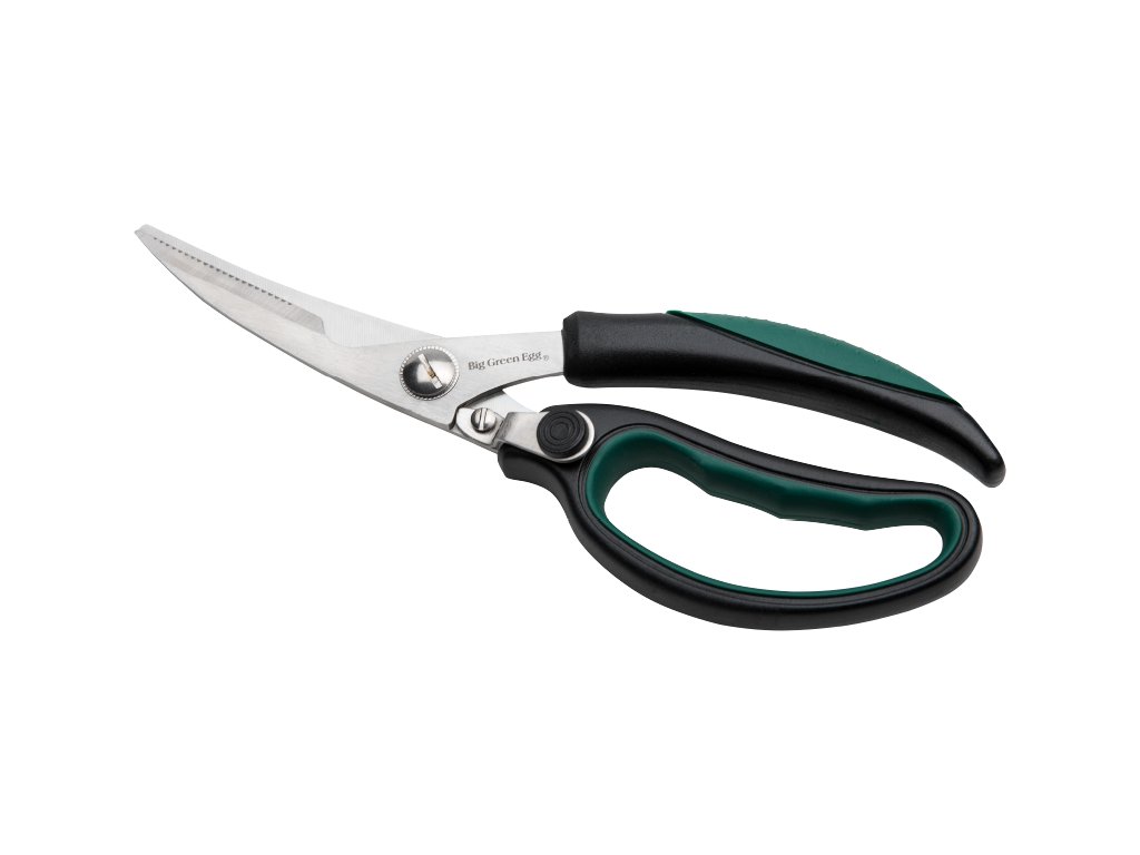 Nožnice zvládnu všetky možné úlohy súvisiace s varením na Big Green Egg. S týmito kuchynskými nožnicami z nehrdzavejúcej ocele môžete ľahko nakrájať kurča na pekné kúsky. Môžete ich použiť aj na odstránenie rybích plotov, na rezanie kuracích filiet alebo na prestrihnutie šnúrky, ktorá drží mäso pohromade.