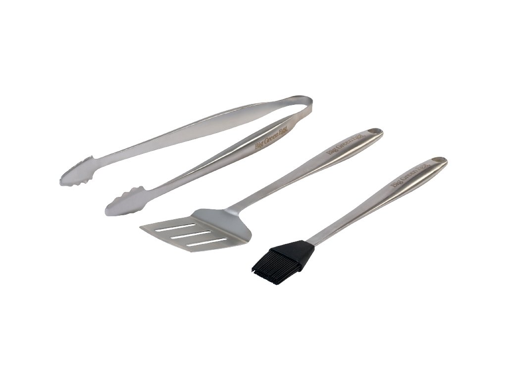 Kvalitné nástroje urobia polovicu práce. Skutočný expert na Big Green Egg má v EGG vždy po ruke sadu náradia z nehrdzavejúcej ocele. Táto štýlová trojdielna súprava z nehrdzavejúcej ocele pozostáva z klieští, obracačky a silikónovej kefy. A s touto trojicou môžete všetko bezpečne a hygienicky naložiť, otočiť a marinovať.