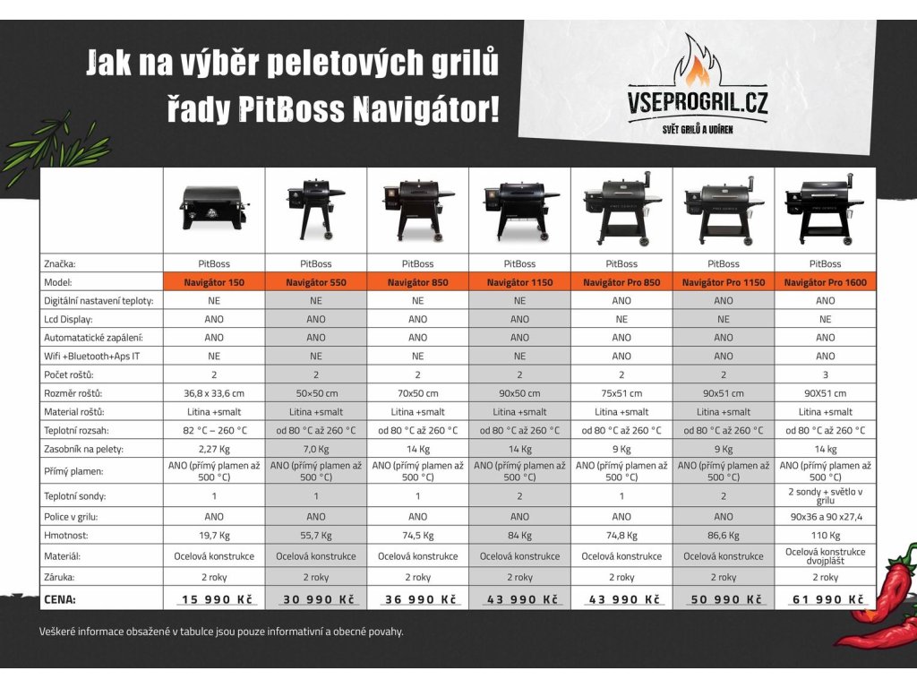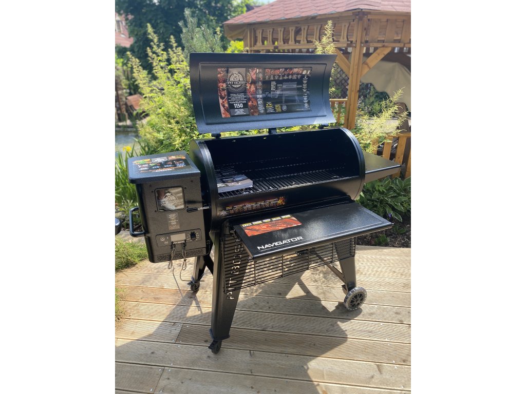 Gril Navigator 1150 Pit Boss Smoker je veľký gril s robustnou oceľovou konštrukciou a pokročilou technológiou spaľovania peliet, ktorá umožňuje grilovanie a klasické grilovanie, údenie alebo priame grilovanie na otvorenom ohni.