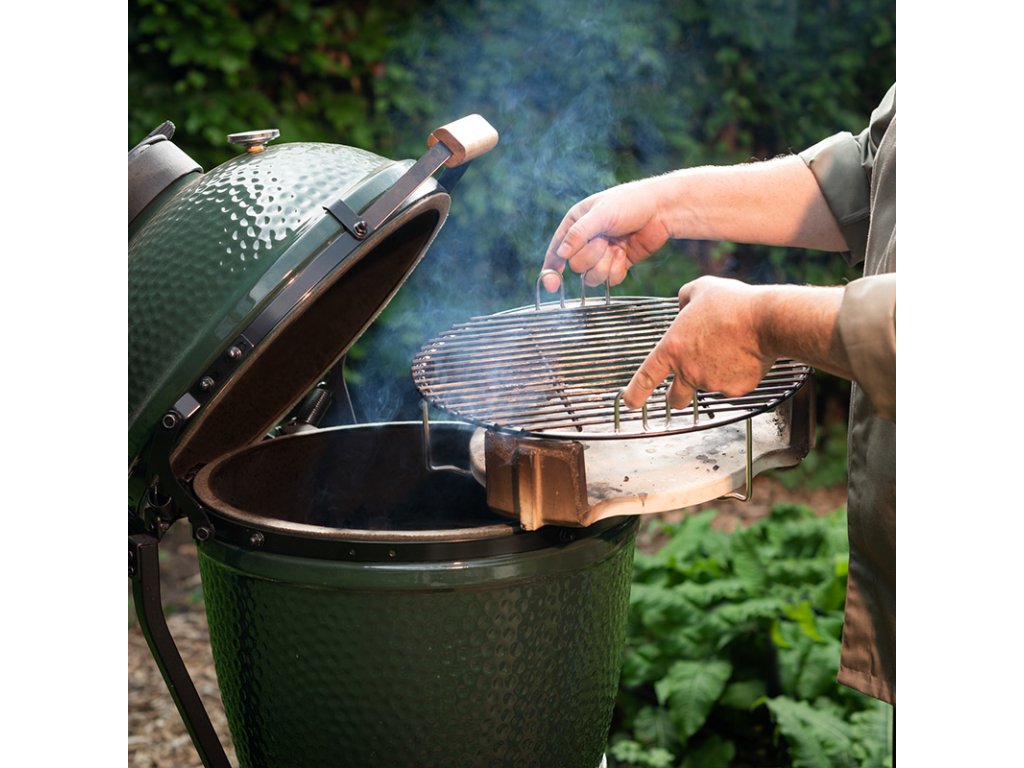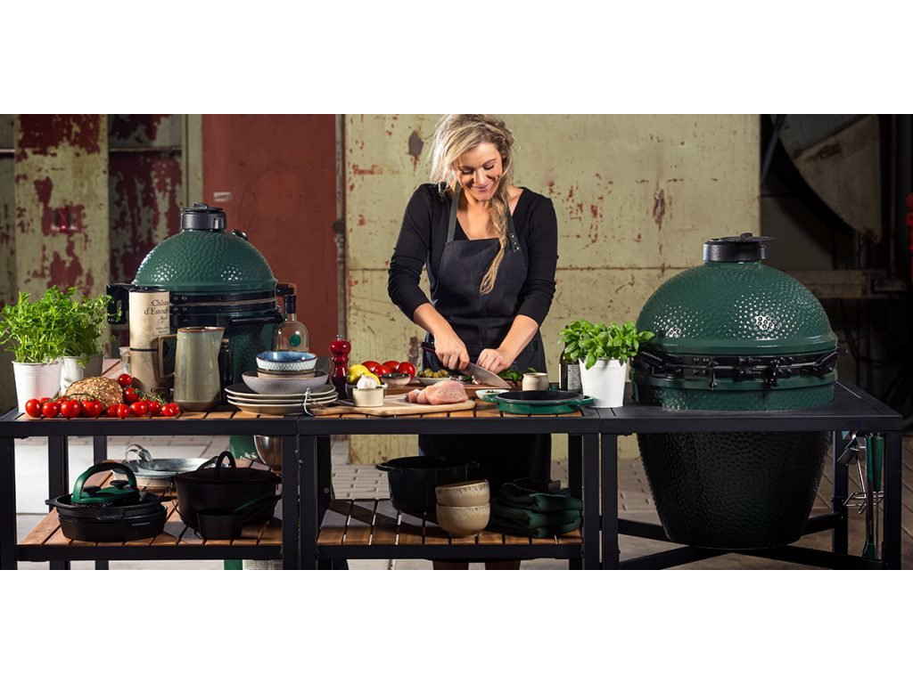 Big Green Egg Large ponúkadostatok priestoruna prípravu pokrmov pre vašu rodinu aj priateľov. S týmto grilomzvládnete pohostiť až osem osôb. Pre získanie ďalšieho priestoru, vložte kamado Large do akáciového stola alebo ho zabudujte do svojej vonkajšej kuchyne. Svoj záhradný gril môžete umiestniť do pojazdného stojana a pomocou držadla ho jednoducho presunúť kamkoľvek bude potrebné.