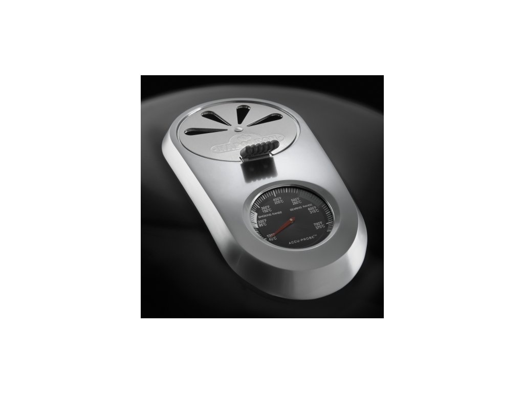 Veko s vestavaným teplomerom a nerezovými otvormi pre prúdenie vzduchu je pevne spojené s kotlom, nemusíte tak rozmýšľať nad tým, kam ho odložiť.