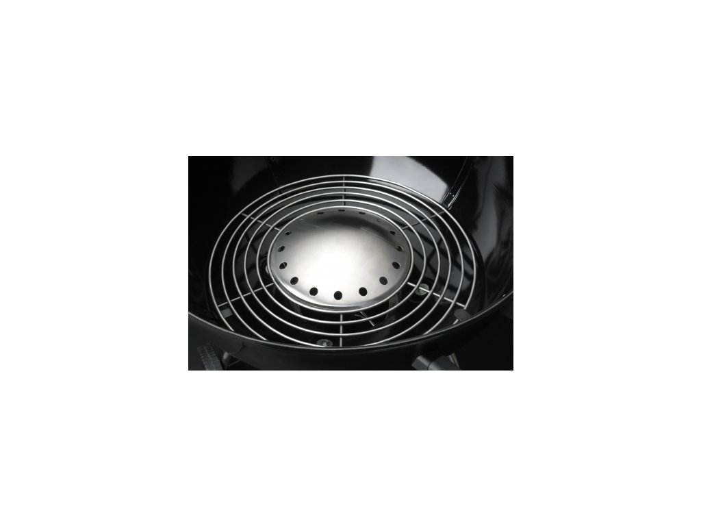 K drevenému uhlí alebo briketám môžete pridať aromatické lupienky pre zvýraznenie chuti. Ich zbytky zachytí odolný ocelový popolník, umiestnený pod kotlom grilu. Po grilovaní alebo údení potom ľahko ho vyprázdnite a vyčistíte.