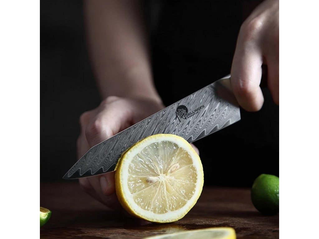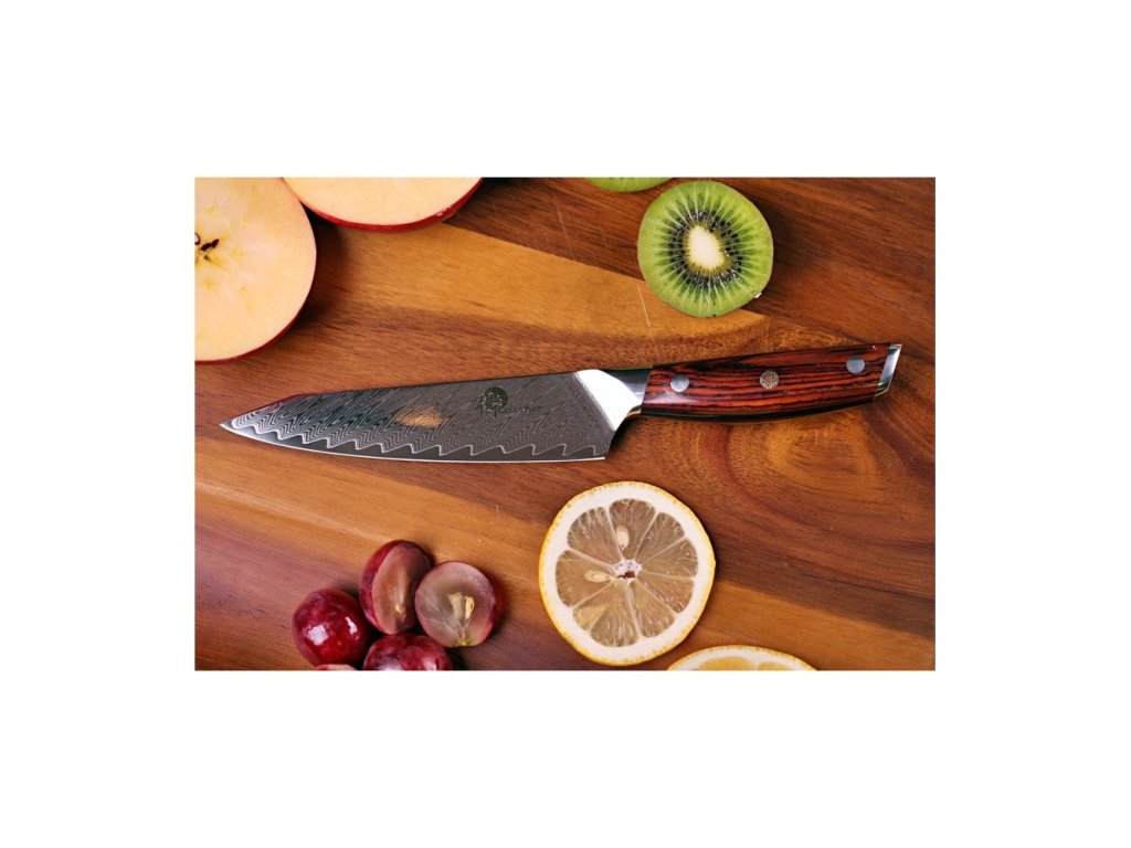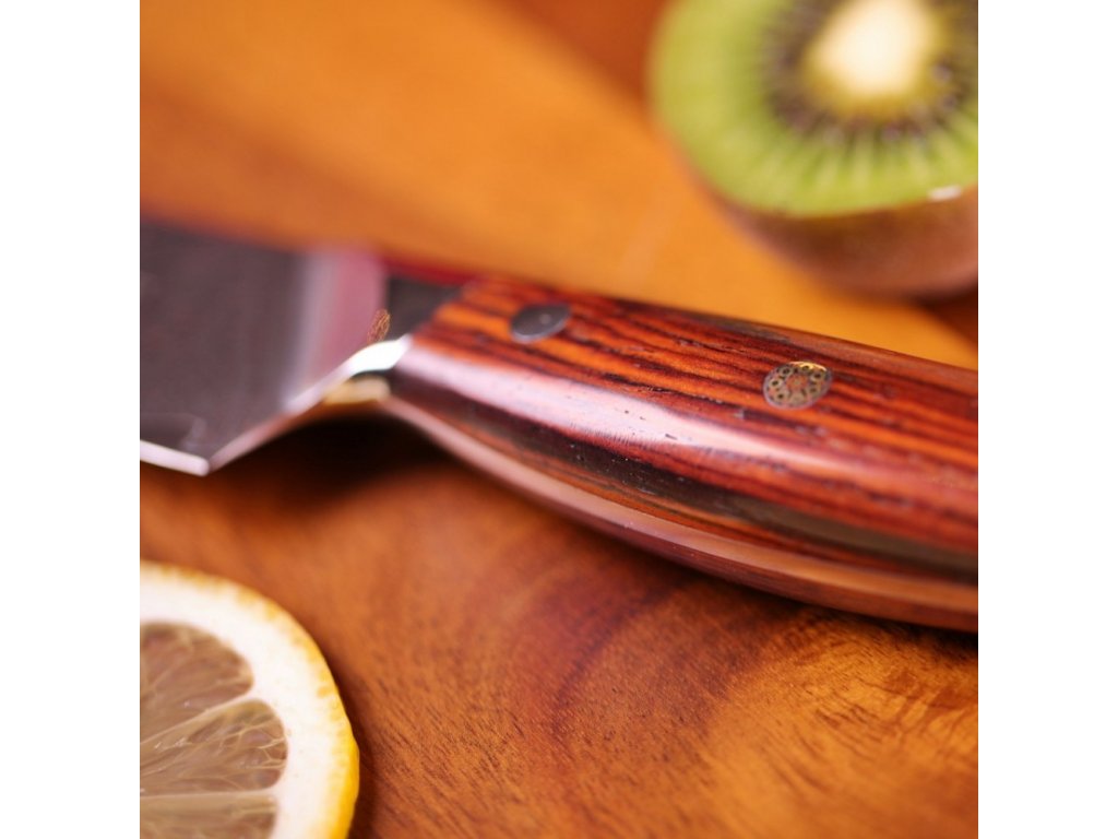 Tento damaškový nôž je užitočnou alternatívou veľkého kuchárskeho noža, keď potrebujete robiť presné rezy alebo napríklad krájať zelenú fazuľku či inú menšiu zeleninu a ovocie. Sú vhodné aj na špízovanie a krájanie mäsa. Zaoblená čepeľ umožňuje mierne kmitanie pri krájaní. Jej ostrosť je ideálna na prípravu sendvičov všetkých druhov. Dlhá čepeľ a rukoväť vo westernovom štýle vám poskytnú najlepšiu kontrolu pri krájaní a porciovaní. Japonské remeselné spracovanie, precíznosť a nové technológie robia tento nôž z damaškovej ocele jedinečným a nenapodobiteľným.