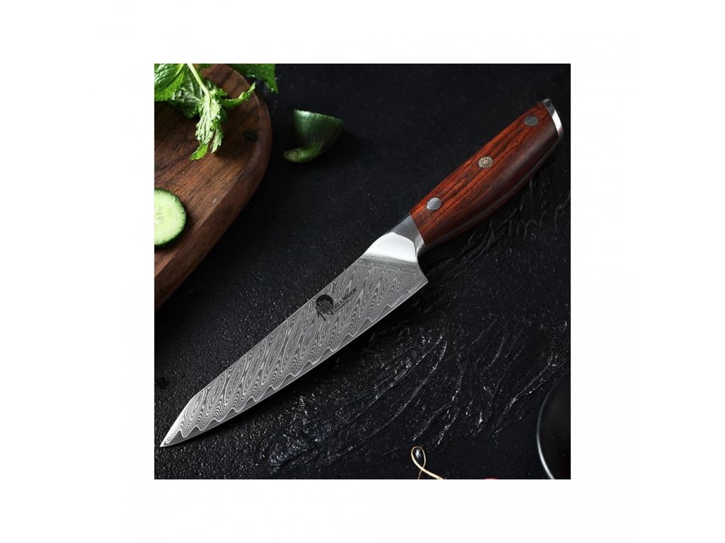 Upozornenie: Každý nôž je vyrobený z prírodných materiálov. Každý kus damascénskej ocele alebo dreva je originálny a nenapodobiteľný, preto váš nôž nemusí vyzerať presne ako na obrázku. Nôž, ktorý dostanete, bude mať rovnakú kvalitu a detaily, ale môže sa mierne líšiť.