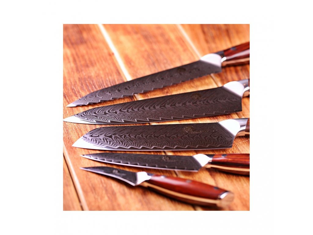 ✅ Japonský nôž Utility5" zosérie Rose-Wood damascus vyrobený z damascénskej ocele ( damascénska oceľ ), nikdy neumývajte v umývačke riadu. Na zachovanie ostrosti nôž umyte ručne a ihneď ho osušte.