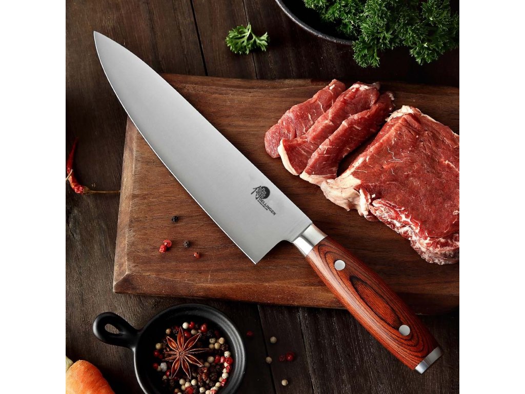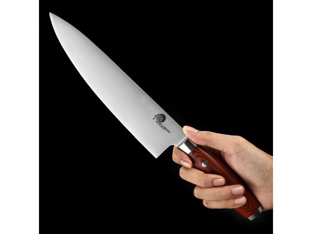 ✅ Japonský kuchársky nôž 8" Nemecký nôž Pakka wood z nemeckej ocele 1.4116, nikdy neumývajte v umývačke riadu. Na zachovanie ostrosti nôž umývajte ručne a ihneď ho osušte.