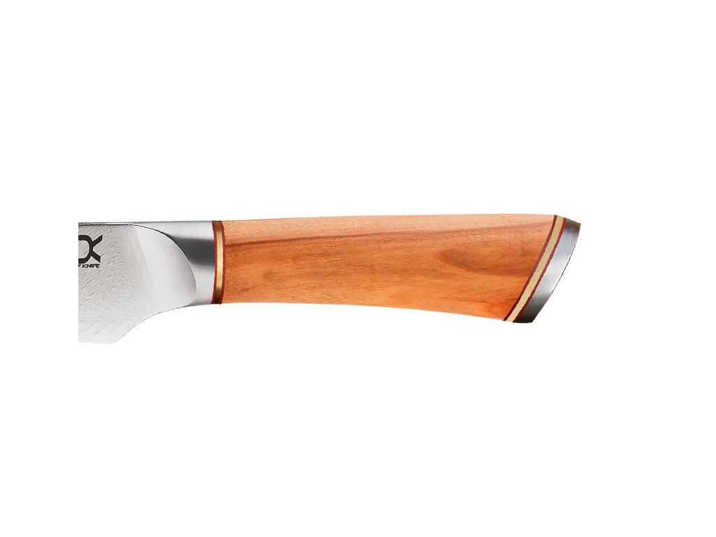 Rukoväť je vyrobená z prekrásneho olivového dreva.Olivové drevo je farebne veľmi atraktívne a veľmi žiadané. Drevo sa dá krásne leštiť, je pevné a tvrdé. Vďaka tomu sa nazýva „krásou, ktorá nestarne“. Rukoväte sú navrhnuté tak, aby dokonale padli do ruky a poskytovali pohodlie.Nože sú dokonale vyvážené a zabraňujú únave rúk.Tým je zaistená maximálna kontrola a presnosť.