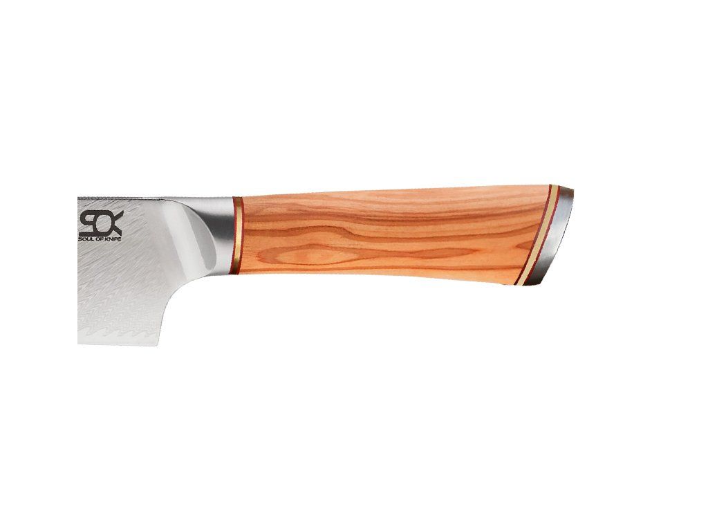 Rukoväť je vyrobená z prekrásneho olivového dreva. Olivové drevo je farebne veľmi atraktívne a veľmi žiadané. Drevo sa dá krásne leštiť, je pevné a tvrdé. Vďaka tomu sa nazýva „krásou, ktorá nestarne“. Rukoväte sú navrhnuté tak, aby dokonale padli do ruky a poskytovali pohodlie. Nože sú dokonale vyvážené a zabraňujú únave rúk. Tým je zaistená maximálna kontrola a presnosť.