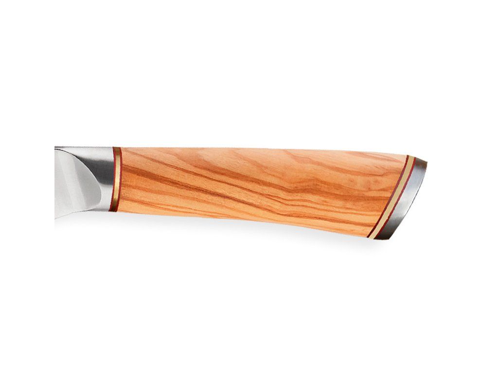 Rukoväť je vyrobená z prekrásneho olivového dreva. Olivové drevo je farebne veľmi atraktívne a veľmi žiadané. Drevo sa dá krásne leštiť, je pevné a tvrdé. Vďaka tomu sa nazýva „krásou, ktorá nestarne“. Rukoväte sú navrhnuté tak, aby dokonale padli do ruky a poskytovali pohodlie.Nože sú dokonale vyvážené a zabraňujú únave rúk. Tým je zaistená maximálna kontrola a presnosť.
