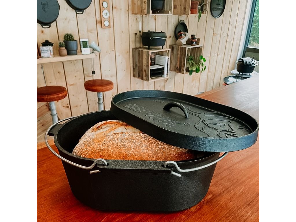 Holandská rúra VH9L je vyrobená z liatiny, má jedinečný oválny tvar a pokrievka má zvýšený okraj. Liatina je materiál, ktorý dobre vedie a udržiava teplo. Vďaka jedinečnému oválnemu tvaru je táto holandská rúra ideálna na pečenie najjemnejšieho chleba.