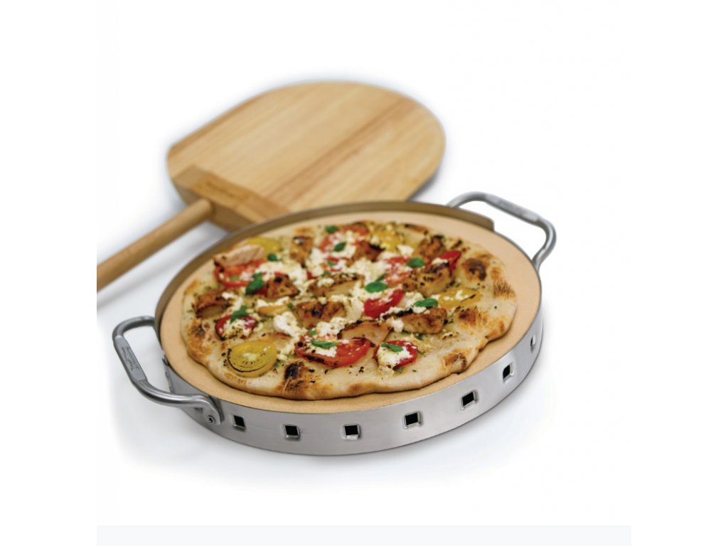 Kameň na pizzu Broil King má vysokokvalitný podstavec z nehrdzavejúcej ocele s rukoväťami. Sada obsahuje kameň na pizzu s priemerom 33 cm, ktorý odolá rýchlym zmenám teploty, a drevenú šupku na pizzu s odnímateľnou rukoväťou.