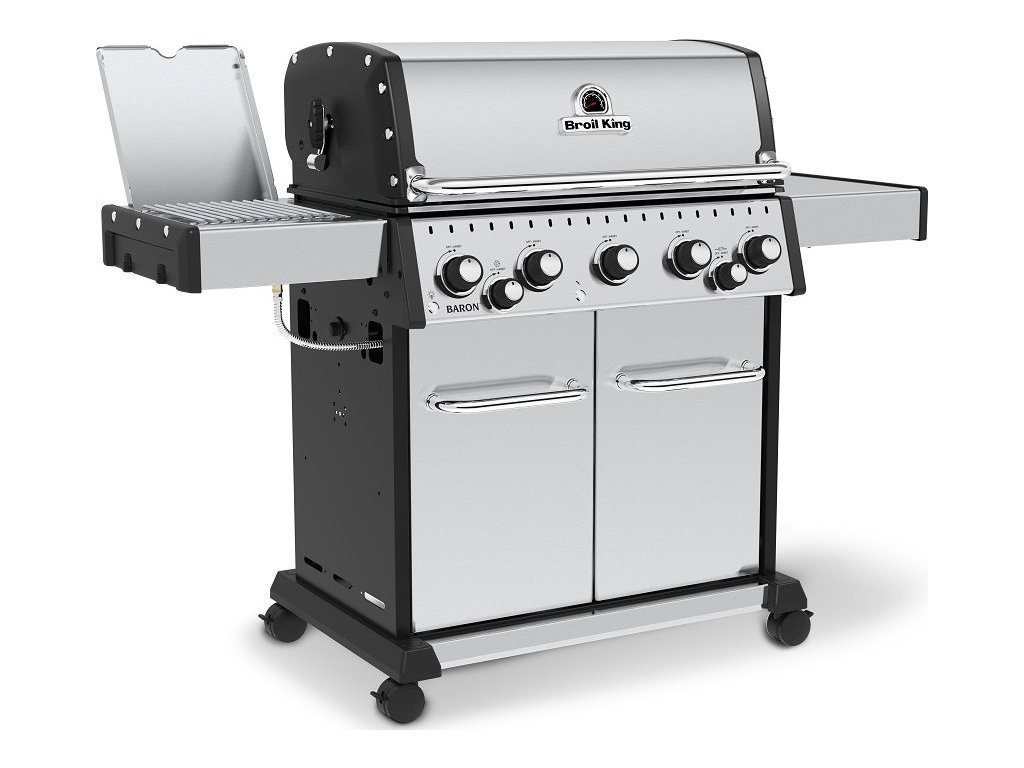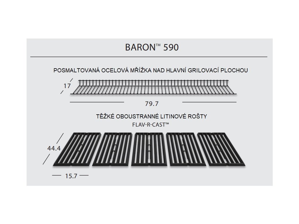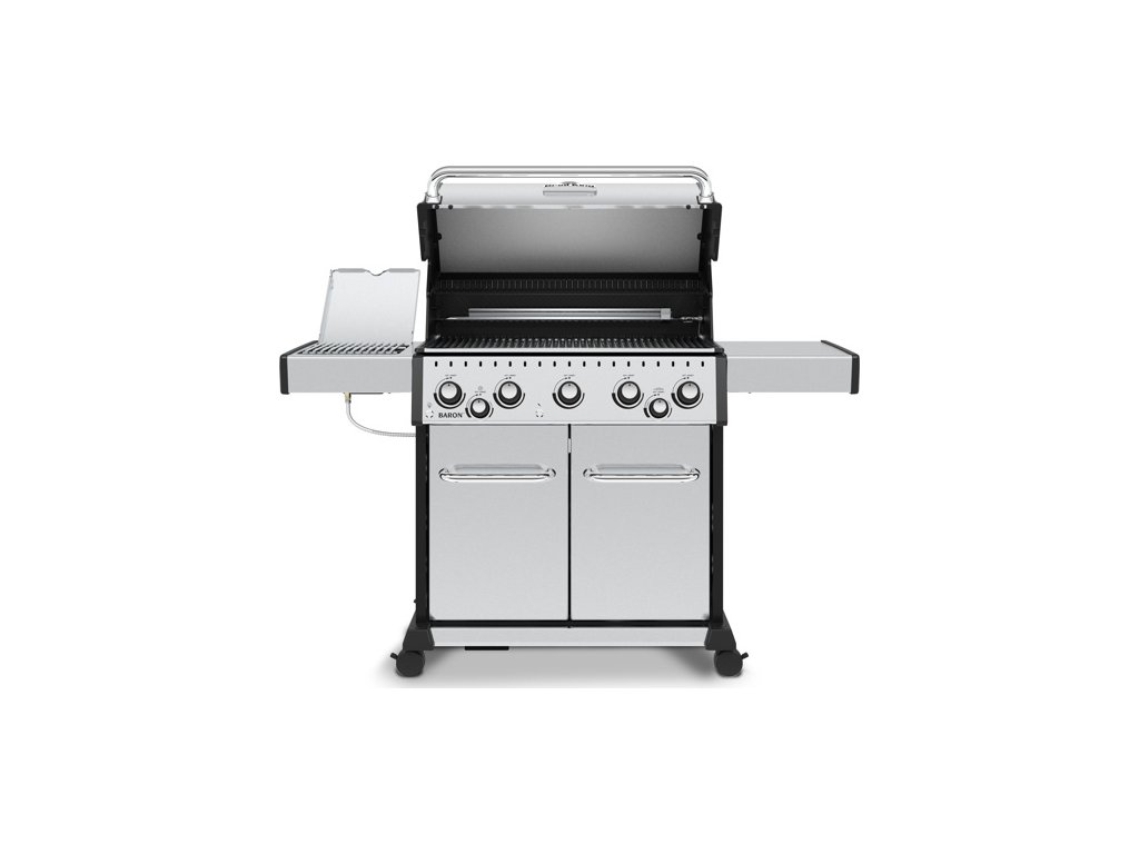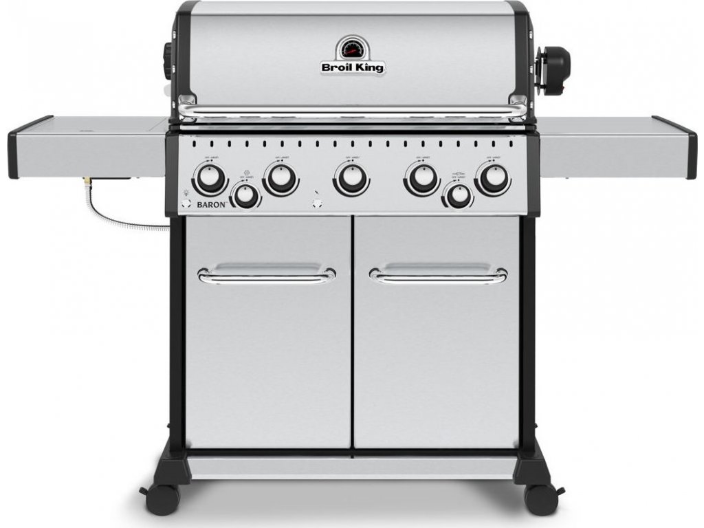 Luxusný plynový gril Baron S 590 IR Broil King znehrdzavejúcej ocele pre iný rozmer grilovania. Dual-Tube™ horáky, bočný IR horák alebo 230V otočný gril sú len zlomkom jeho bohatých funkcií.Gril má 4 hlavné horáky a 1 bočný IR horák, ktorý umožňuje opekať mäso pri teplote až 927 ºC. Na ešte šťavnatejšie grilovanie použite elektrický gril sprídavným zadným horákom s kapacitou 7-8 kg .Baron S 590 IR ponúka prémiové konštrukčné prvky, ako je dvojité veko, robustné obojstranné liatinové grilovacie rošty, jedinečný ohrievací rošt, kryty horákov Flav-R-Wave™ z nehrdzavejúcej ocele, patentované horáky Dual-Tube™ z nehrdzavejúcej ocele a plynulé ventily Linear-Flow™ na presnú reguláciu teploty.