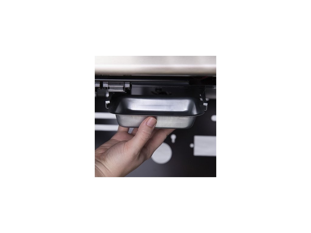 Grilovacia panvica je vyrobená z nehrdzavejúcej hliníkovej zliatiny s jedinečným tvarovaním, ktoré maximalizuje odparovanie tuku počas grilovania. Oceníte ostré hranygrilu, ktoré sú ideálne na prípravu steakov. Ak ju otočíte, získate gril s vaničkou, ktorý je skvelý na grilovanie kurčiat, zeleniny a iných menších potravín.Druhú grilovaciu plochuvyužijete na ohrievanie alebo nepriame grilovanie potravín .