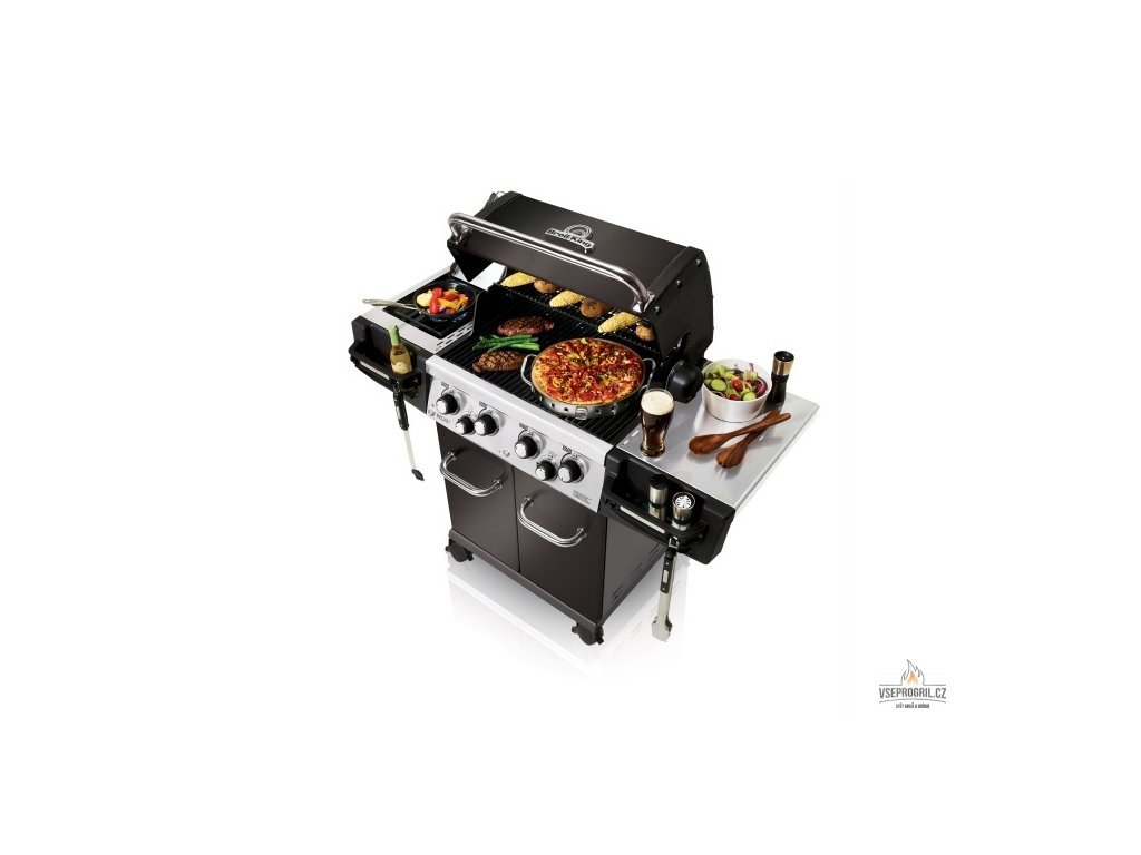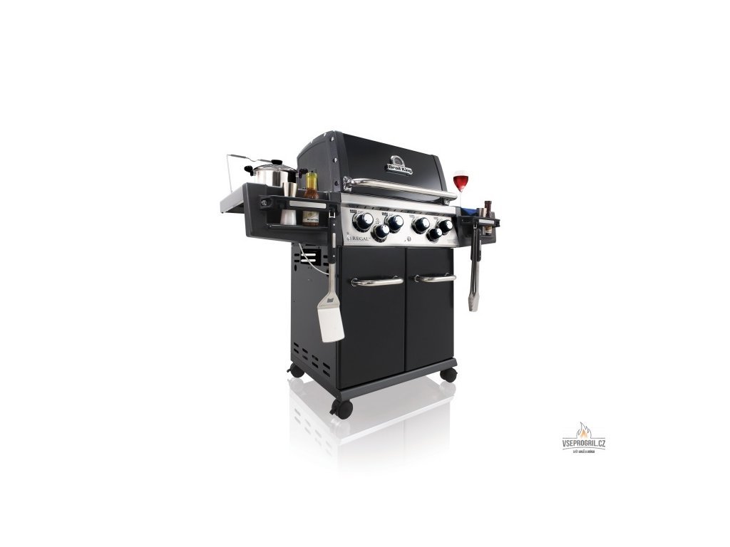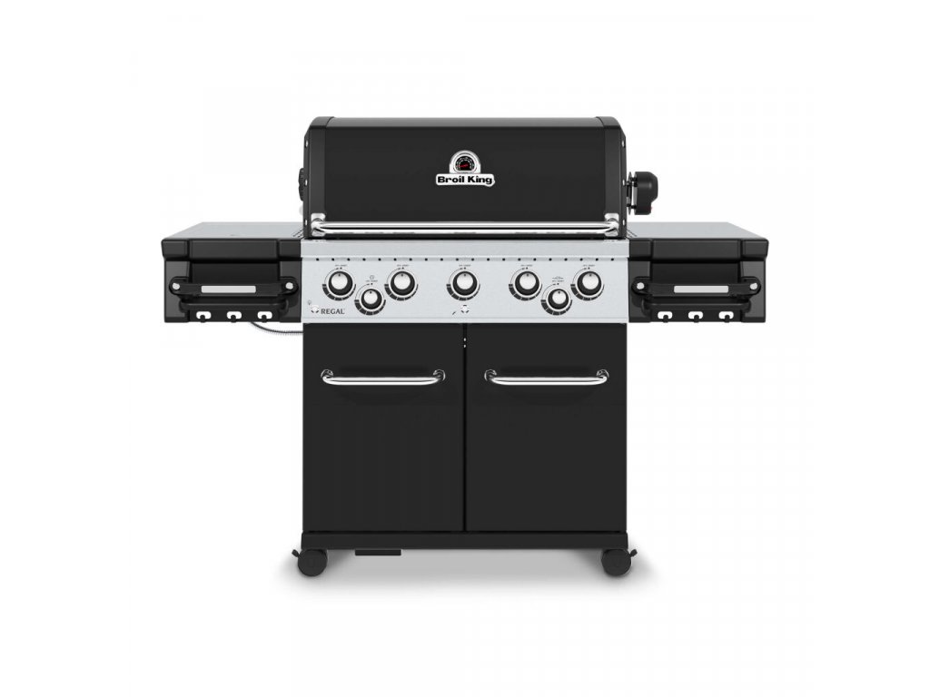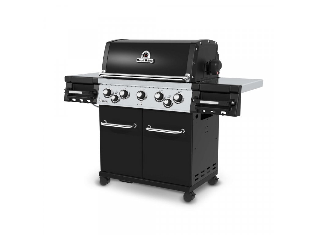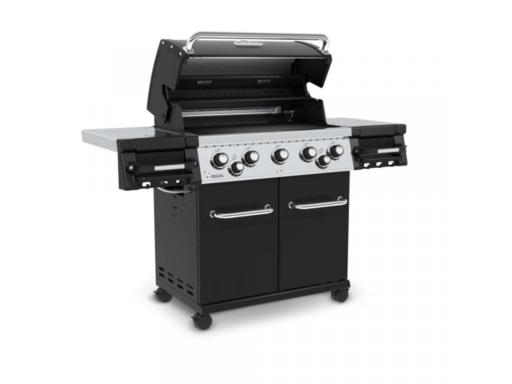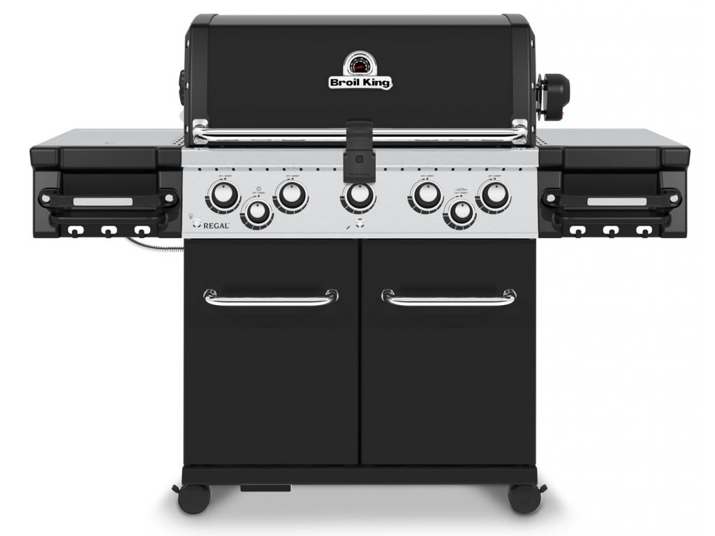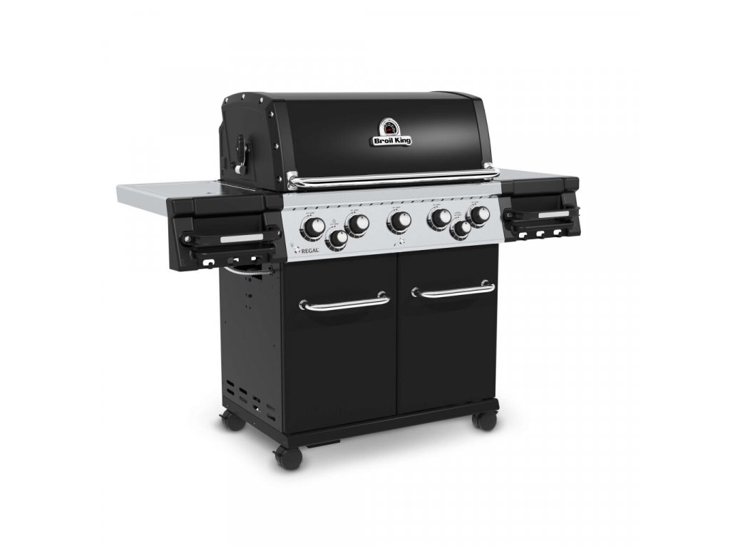 Plynový gril Regal 590 včiernej farbe s piatimi horákmi od kanadskej spoločnosti Broil King je vybavený bočným varičom a elektrickým ražňom (kapacita motora ražňa je približne 7-8 kg) s ďalším zadným horákom. Grilovacia plocha je pokrytá robustnými roštami z nehrdzavejúcej ocele, ktoré umožňujú pripravovať niekoľko rôznych pokrmov naraz.