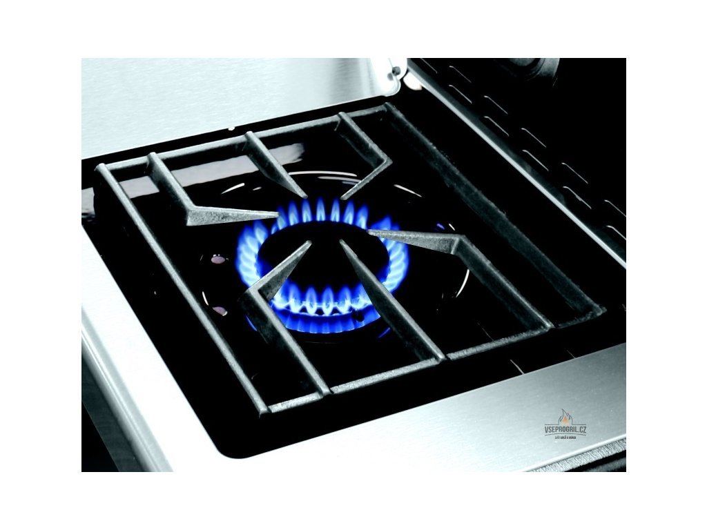 Praktický bočný varič, krytý liatinovým roštom, vám umožní pripravovať prílohy alebo ohrievať omáčky a iné pochúťky bez toho, aby ste museli ísť do kuchyne. Prídavný zadný horák je užitočný pri používaní elektrického grilu, ktorý je tiež súčasťou grilu. Do podvozku grilu Regal 590 sa pohodlne zmestí 10 kg plynová fľaša.