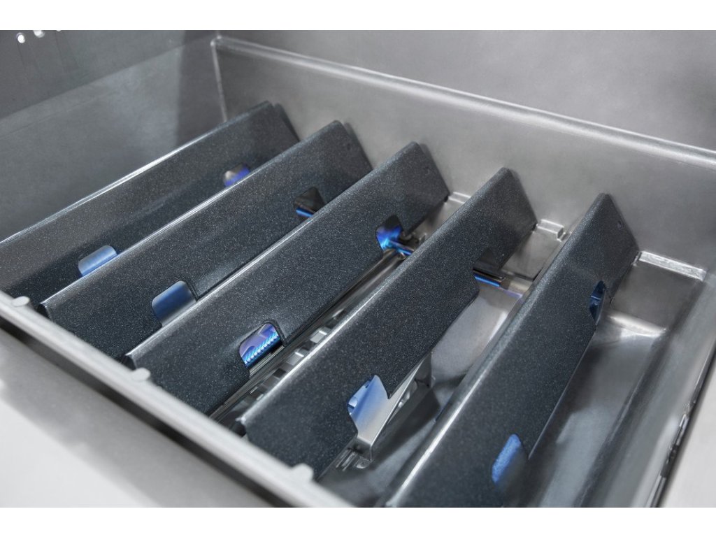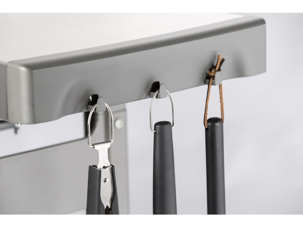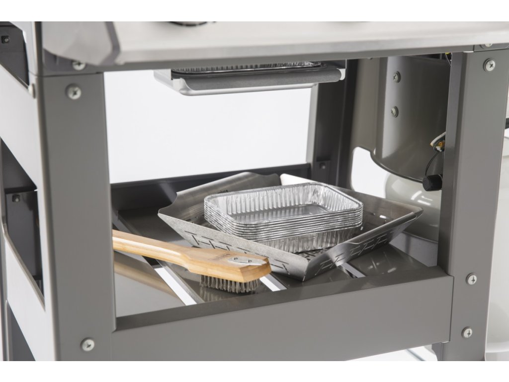 Praktické háčiky na náčinie a otvorený vozík sú ideálne na odkladanie grilovacieho náčinia a príslušenstva, aby ste ho mali vždy po ruke. S výkonným grilovacím systémom GS4 a prípravou iGrill 3 (iGrill 3 monitoruje teplotu mäsa za vás a upozorní vás, keď mäso dosiahne požadovanú teplotu) budú vaši priatelia a rodina stáť v rade na vaše grilovanie.