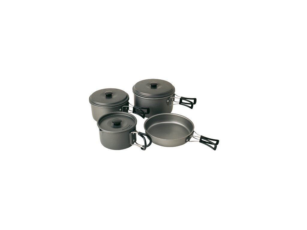 Robustná 8-dielna hliníková súprava riadu so zvýšenou odolnosťou proti oderu a korózii.