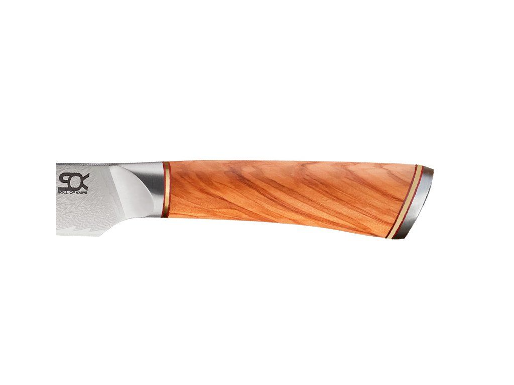 Rukoväť je vyrobená z prekrásneho olivového drevaOlivové drevo je farebne veľmi atraktívne a veľmi žiadané. Drevo sa dá krásne leštiť, je pevné a tvrdé. Vďaka tomu sa nazýva „krásou, ktorá nestarne“. Rukoväte sú navrhnuté tak, aby dokonale padli do ruky a poskytovali pohodlie. Nože sú dokonale vyvážené a zabraňujú únave rúk. Tým je zaistená maximálna kontrola a presnosť.