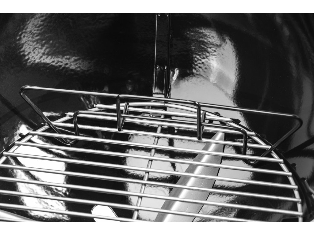 Klasická konštrukcia grilu má aj niekoľko vylepšení v podobe hlbšieho popolníka, vyšších nôh a integrovaných háčikov, na ktoré môžete pohodlne zavesiť grilovacie náradie.