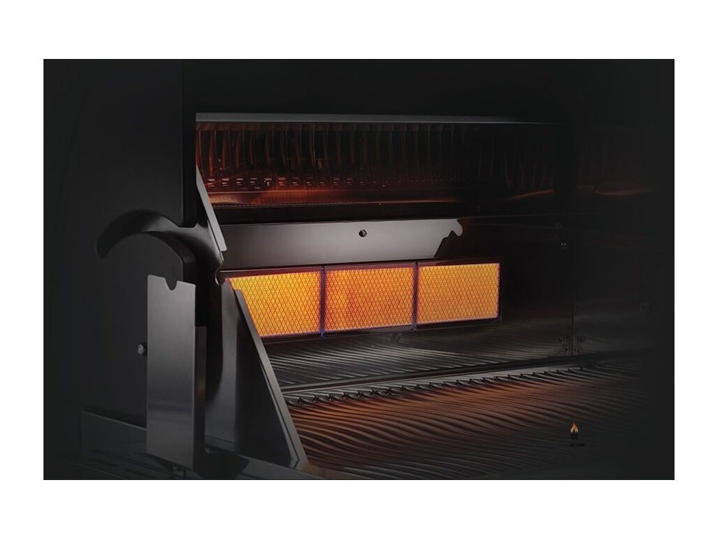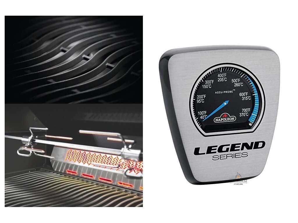 Zabudovaný plynový gril BUILD-IN LEGEND 485 vás na prvý pohľad presvedčí, že práve ten potrebujete mať na záhrade. Má tri nerezové horáky a jeden zadný pre rotisserie. Vďaka tomu sa môže pýšiť výkonom 14,8 kW. K tomu je vybavený ergonomickými ovládacími gombíkmi, teplomerom alebo porcelánom smaltovaným liatinovým roštom WAVE™ v tvare klasických vlniek. Navyše je osadený zadným keramickým infračerveným horákom pre rožnenie na otočnom rožni.